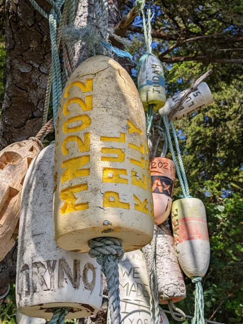 Buoys hanging in trees marked the trail into the higher forest...