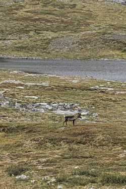 Nearing the top of the pass after a 500 meter climb, we spied a few various reindeer out grazing on the hillsides. They were fun to watch while we took a short break.