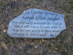 Walking through a pine forest along a ridge, I noticed this carved rock just sitting there along the trail. When I got home, I did some research and discovered that Ms. Jaeger died in a car accident on April 1, 2011, along with her dog named Odie.