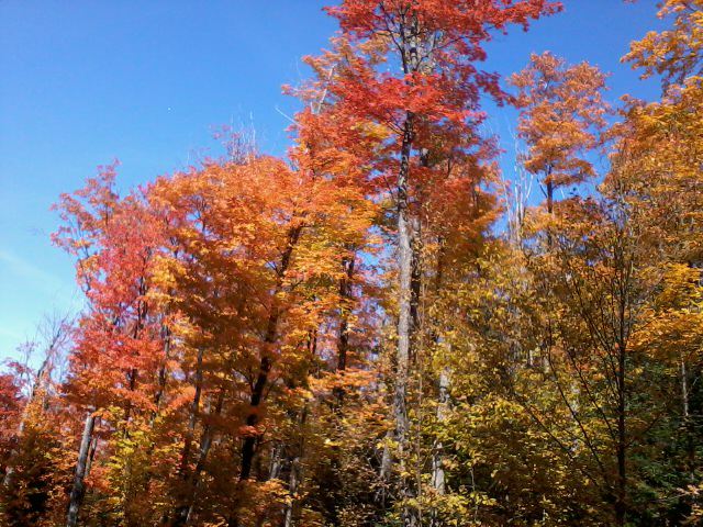 With nice weather, no one to talk with, and a fairly good trail, I practically flew through the woods. I occasionally found myself being startled by a glow around me. When I focused, I noticed the high tree canopy was bright green, yellow, or orange in the sun and the low ground cover was the same color. For as far as I could see (which wasn't far), the world was flooded in one color. I expected to see pixies or leprechuans dancing around any minute. Very beautiful, magical scenes.